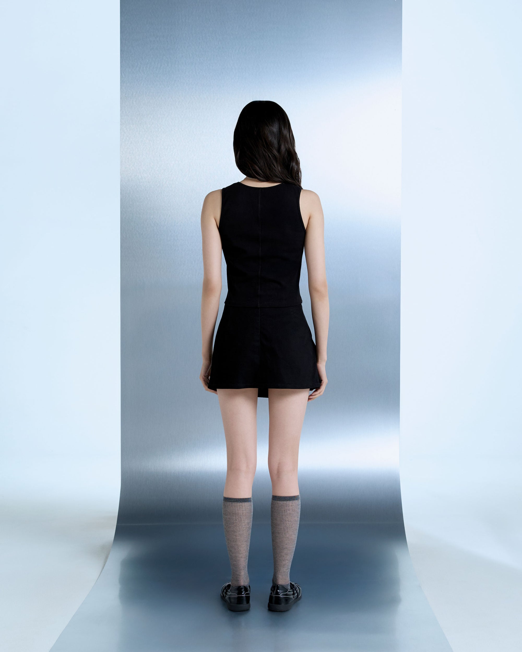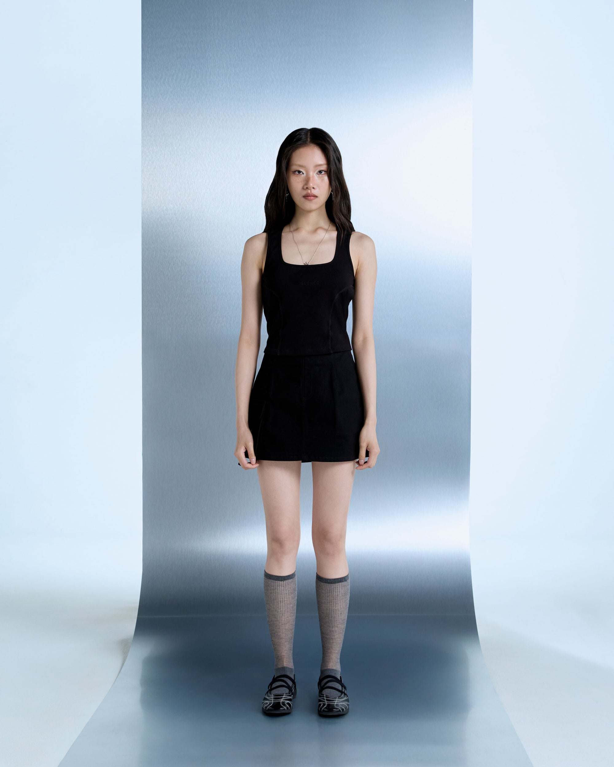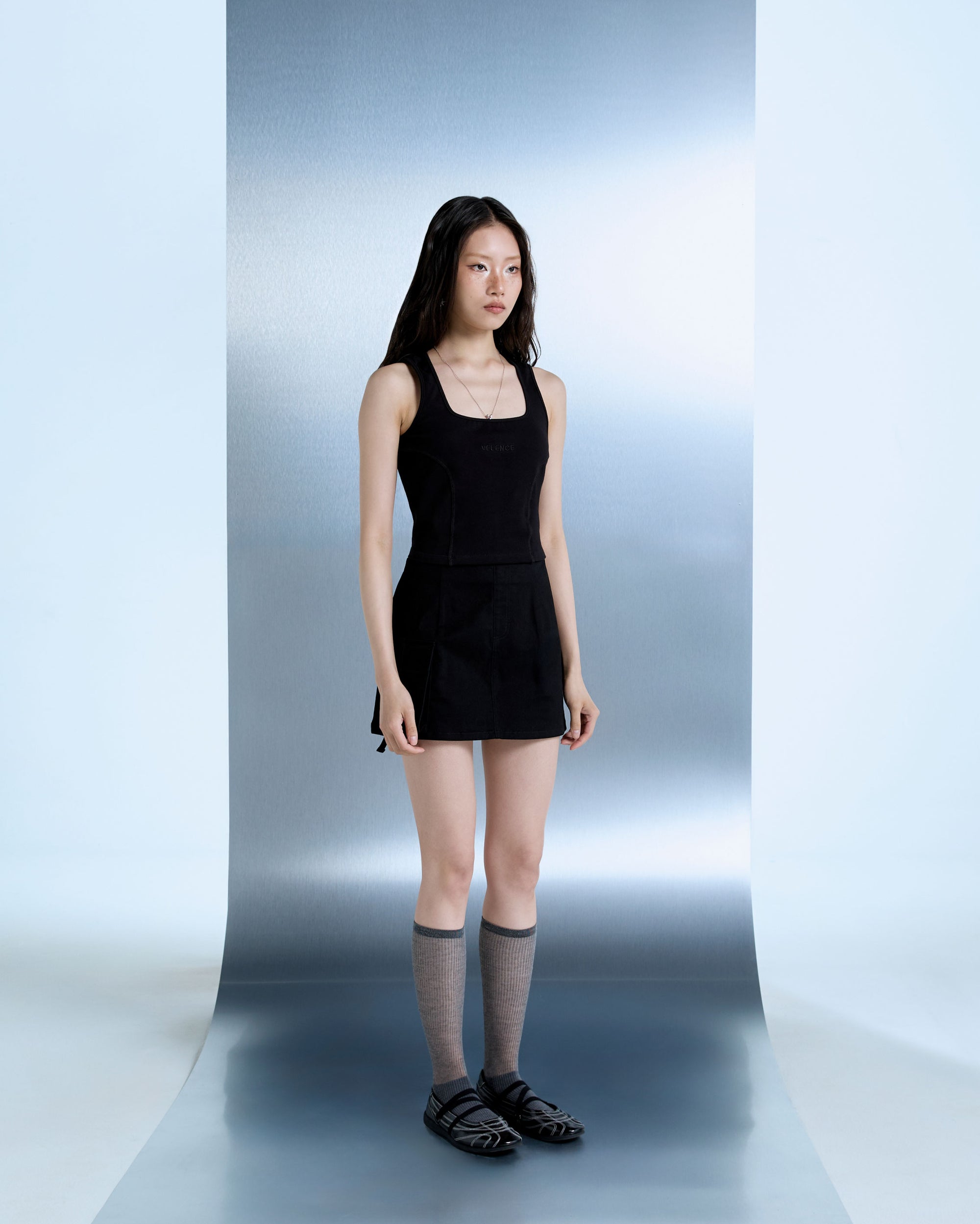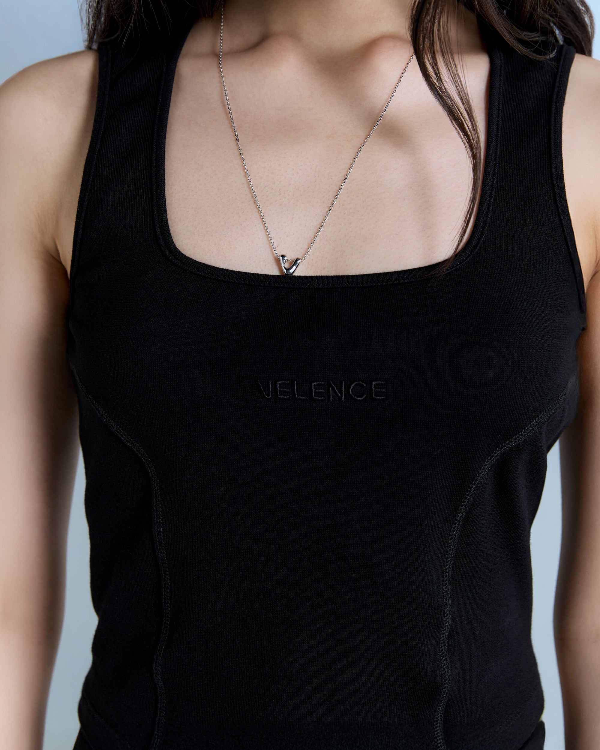 Slim tank top crafted from a cotton-blend fabric with balanced stretch. Designed with a square neckline and sculpted seam construction to create a clean, curvy silhouette. Finished with subtle VELENCE logo embroidery.